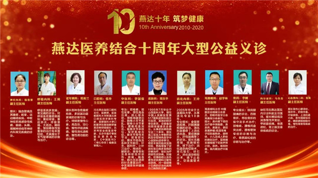 燕達十年,筑夢健康。2020年10月21日,燕達金色年華健康養護中心攜手河北燕達醫院組織開展---燕達醫養結合第二場大型公益義診活動,為燕達養護中心在住賓客提供診療服務。此次義診活動,為在住賓客解決了健康問題,排除了病情困擾,得到滿意答復及診療的賓客紛紛給予高度贊許。